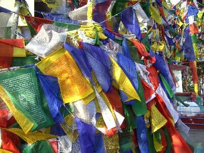 Gebetsfahnen am Mahakala Tempel in Darjeeling
