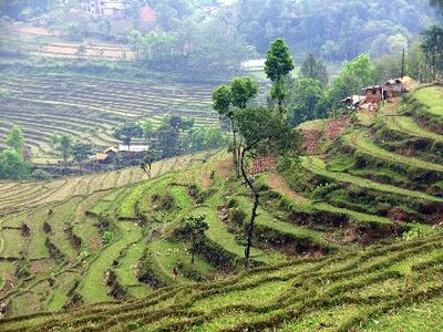 Sikkim: Terrassenfelder in der Nähe von Rumtek