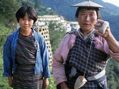 Bhutaner in traditioneller Kleidung