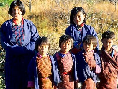 Kinder und Frauen in bhutanischer Tracht