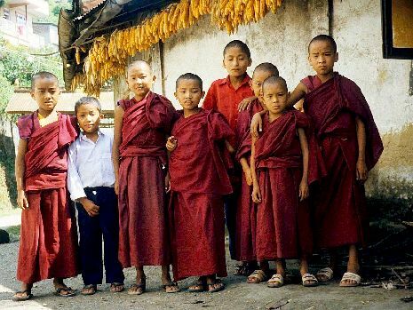 Junge Mönche vor einem Kloster