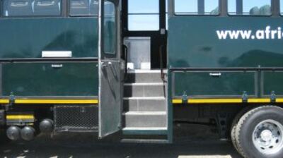Bei dieser Rundreise fahren wir mit einem speziellen Safari-Truck, einem umgebauten LKW, der besser als ein Bus für die Wüste und die nicht befestigten Straßen geeignet ist. Der Komfort im Wageninneren entspricht nahezu dem eines einfachen Reisebusses, allerdings ist er nicht klimatisiert. Stattdessen besitzt der Truck Glasschiebefenster, sodass wir die perfekte Sicht auf die wunderschöne, an uns vorbeiziehende Landschaft genießen und sicher auch das eine oder andere Tier entdecken können.